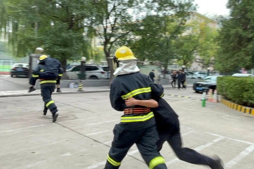 转移至安全区域,救护组随即进行紧急处理,全程高效有序。