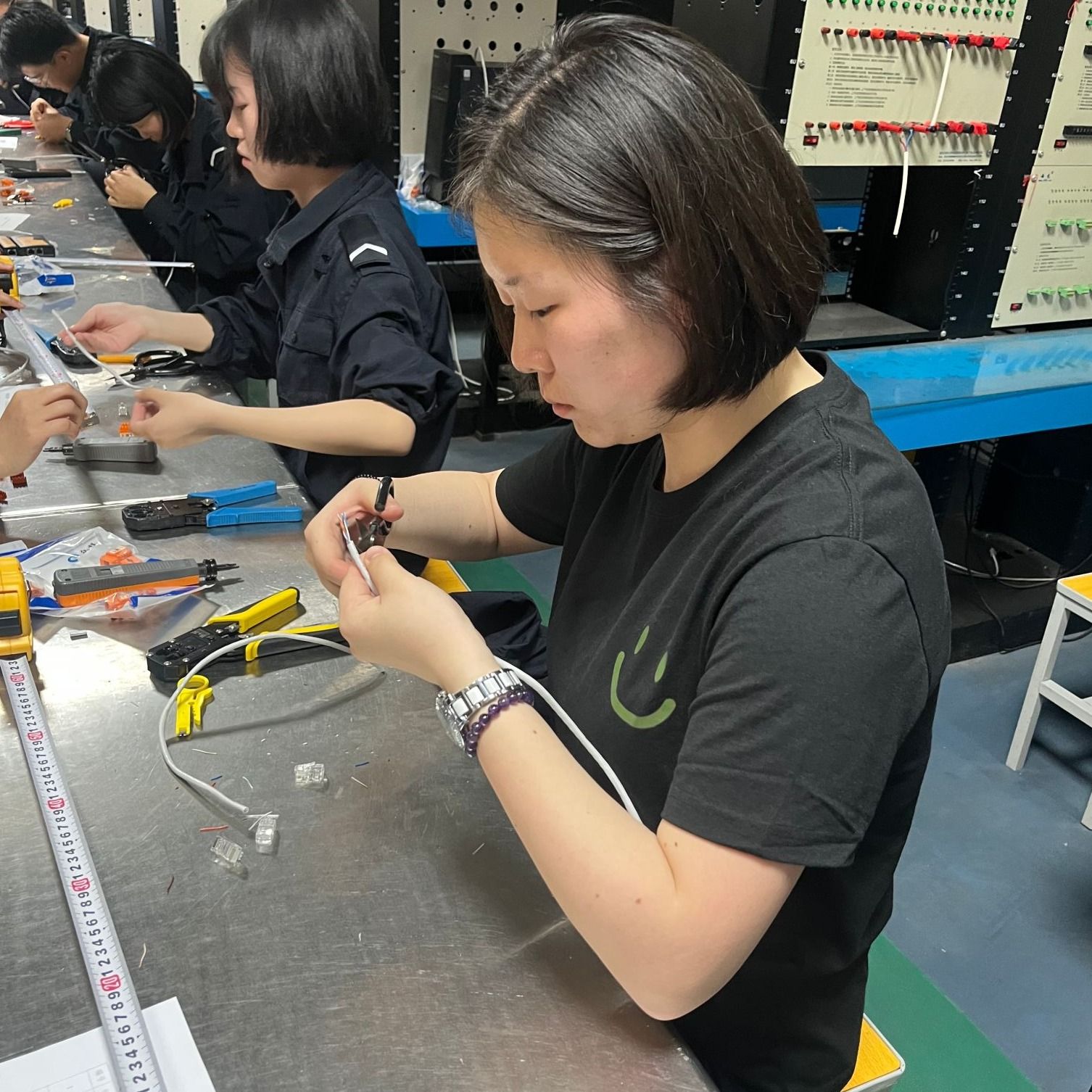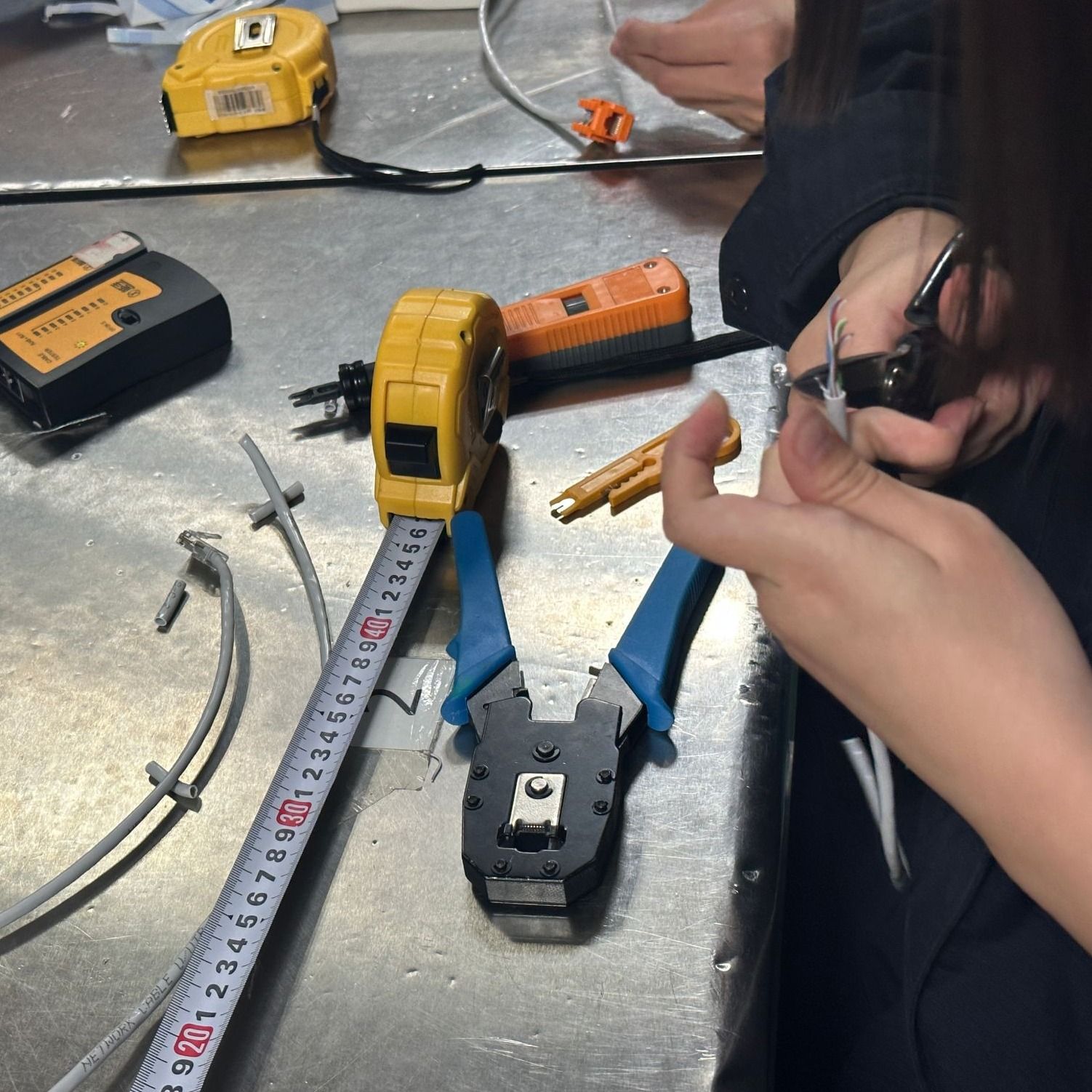 决赛要求选手在规定时间内完成工作区信息点线缆的制作与连接,以线缆的数量、质量作为双重评判标准。赛前,评委组详细解读了比赛规则并进行技术指导。