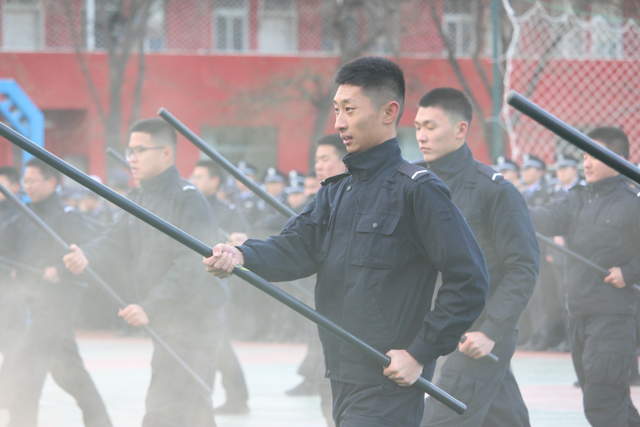 本次会操依次展示包括单个警察徒手队列动作(含标兵动作演示与方阵合成演示)、女子匕首操、应急棍术、警务实战演练以及融合剑术、太极扇与劈挂拳的武术表演在内的多个训练项目。整个过程严格按照队列训练标准执行,同学们警容严整、动作规范、配合默契,充分体现了日常训练的严格规范和纪律作风的养成成效。